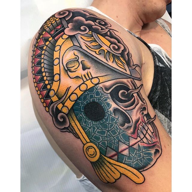 Another Look First Sitting Coveruptattoo Tattoo Tattoos Tattooartist Skull Conquistador Joey Mcdaniel81 Dot Tattoos Aztec Tattoos Sleeve Tattoos